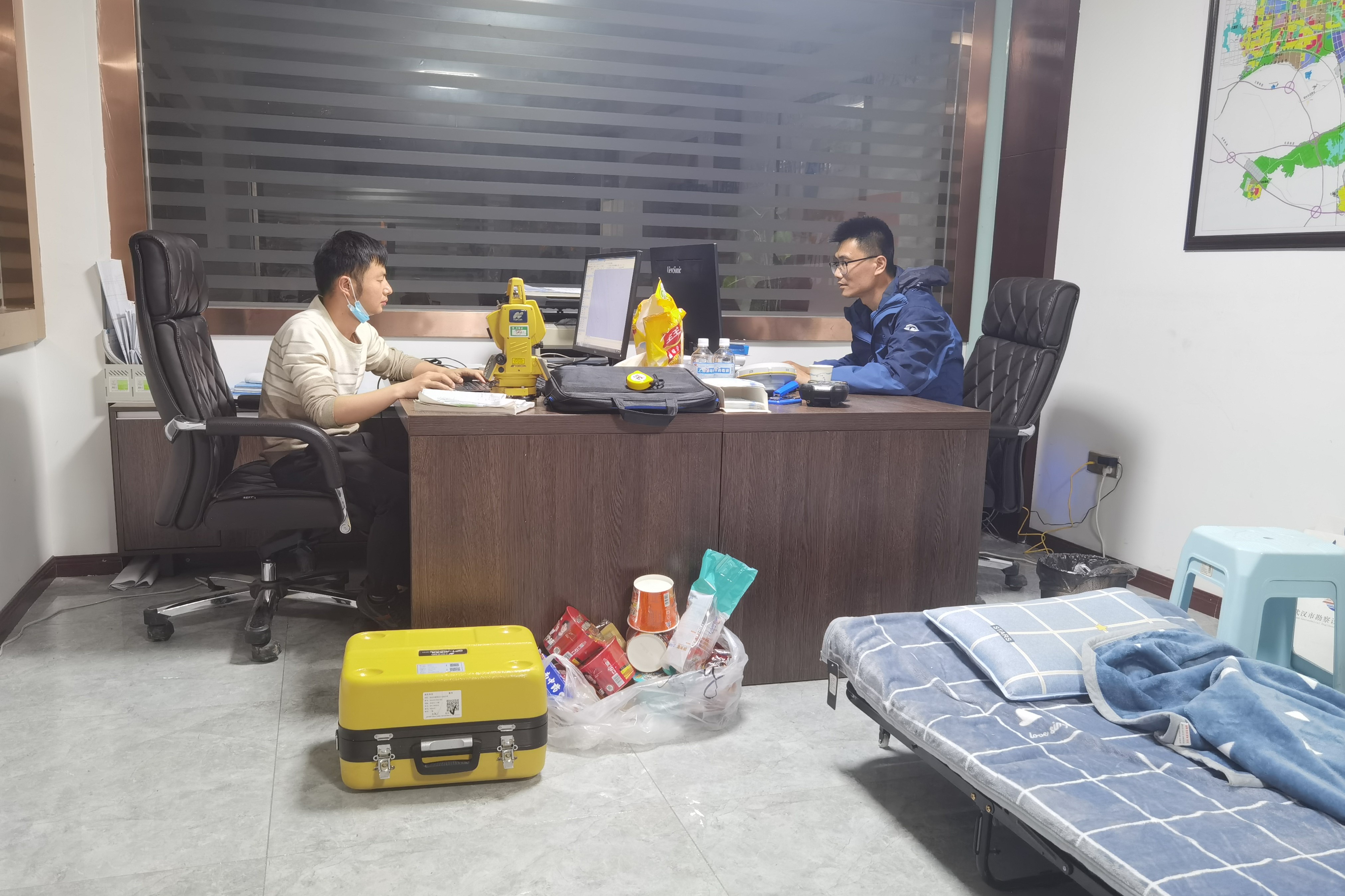 20日下午18:00,沙文東帶領(lǐng)項(xiàng)目團(tuán)隊趕到現(xiàn)場,與鄂州市臨空經(jīng)濟(jì)區(qū)管委會相關(guān)部門進(jìn)行對接。為搶抓工期、確保進(jìn)度,沙文東在現(xiàn)場立即開展了工作部署,所有項(xiàng)目人員迅速進(jìn)入工作狀態(tài),挑燈夜戰(zhàn),當(dāng)晚便完成了5萬平方米的測繪工作任務(wù)。21日—24日,項(xiàng)目人員在做好自身防疫的同時,加班加點(diǎn)推進(jìn)剩余測繪任務(wù),并通宵趕制圖紙,期間還按照要求完成了測淤泥底標(biāo)高、開挖水渠底標(biāo)高、控制測量等工作任務(wù)。25日上午,在項(xiàng)目團(tuán)隊人員的共同努力下,測繪圖紙成果順利按期交付,鄂州市臨空經(jīng)濟(jì)區(qū)管委會領(lǐng)導(dǎo)對公司項(xiàng)目團(tuán)隊敢為人先、逆風(fēng)而行的精神給予了高度認(rèn)可。