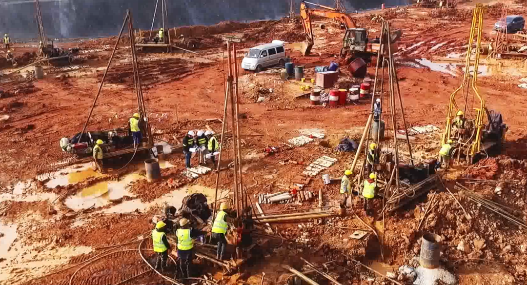 在施工勘察階段,根據(jù)業(yè)主要求,勘察需與施工同步進(jìn)行,彼時正值基坑開挖,作業(yè)面少,但項(xiàng)目任務(wù)重、時間緊。在接到業(yè)主進(jìn)場通知后,團(tuán)隊(duì)迅速召集了近百臺鉆機(jī)及相關(guān)作業(yè)人員,就作業(yè)面少問題,團(tuán)隊(duì)人員不斷與施工總包方溝通協(xié)調(diào)并制定施工、勘察方案,最終通過團(tuán)隊(duì)的拼搏努力及與總包方的密切配合,順利完成了施工勘察任務(wù)。