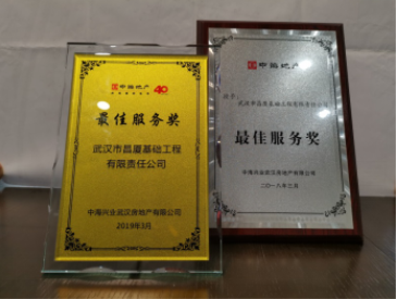 2019年3月15日,中海地產(chǎn)武漢公司舉辦了“2019年度中海地產(chǎn)武漢公司發(fā)展暨合作商交流會”,武漢市昌廈基礎(chǔ)工程有限責(zé)任公司繼2018年后再度榮獲中海地產(chǎn)“最佳服務(wù)獎”,基礎(chǔ)工程公司總經(jīng)理洪興全代表上臺領(lǐng)獎。我司是本次表彰交流大會中唯一基礎(chǔ)施工類獲獎單位。